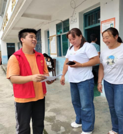 首先,队员以走访的方式对重庆市綦江区横山镇新山村社区的居民进行关于预防网络诈骗以及电信诈骗相关法律维权方法等的宣传。通过口头问答的形式,了解并掌握社区居民相关法律知识熟悉程度,从而更好地进行相关科学理论的普及,帮助居民树立良好的法律意识。