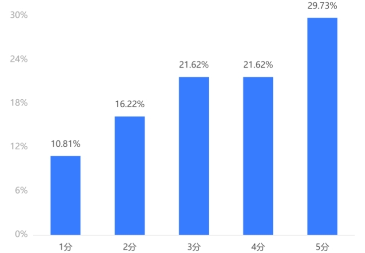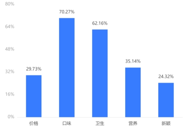 由图 8结果可以看出,群众对于“神仙豆腐”的喜好倾向,70.27%的受访者更注重“神仙豆腐”的口味,62.16%的受访者更注重“神仙豆腐”的卫生问题,35.14%的受访者更注重“神仙豆腐”的营养价值,29.73%的受访者更注重“神仙豆腐”的消费价格,24.32%的受访者更注重“神仙豆腐”能够创新,更加新颖。