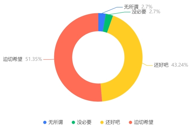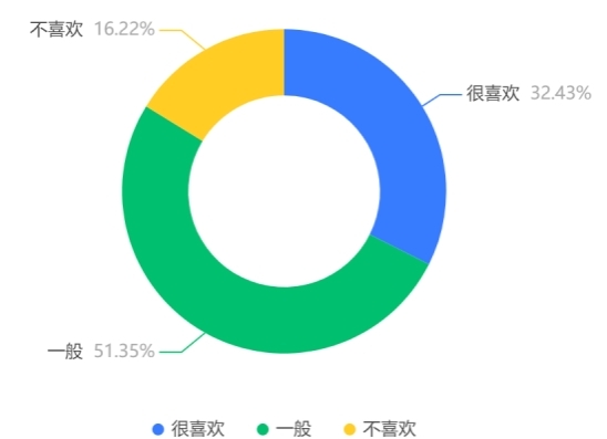 由图9与图10统计结果可以看到,所有受访者中,51.35%的受访群众迫切希望“神仙豆腐”能够推出新口味,43.24%的受访群众对“神仙豆腐”推出新口味持一般态度,仅6.4%的受访者对“神仙豆腐”推出新口味持无所谓的态度。另外,对于“神仙豆腐”的产业发展,超过七成的受访者均看好其未来发展,同时,8.11%的受访者表示并不了解“神仙豆腐”的产业情况。