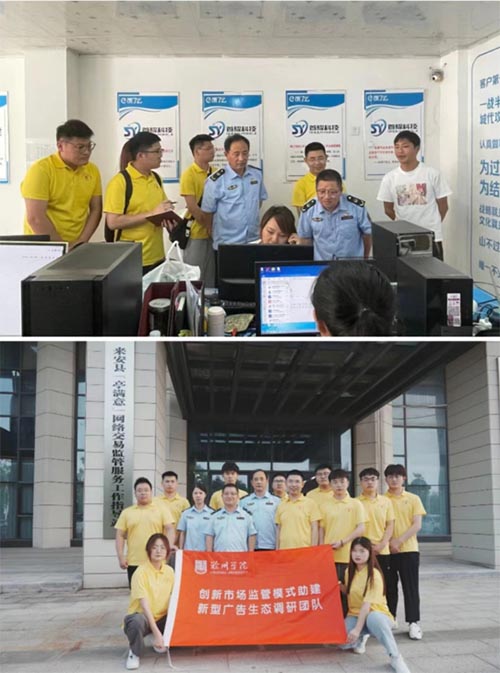 图为市场监管局带领实践团队在各广告活动主体单位调研的现场照片