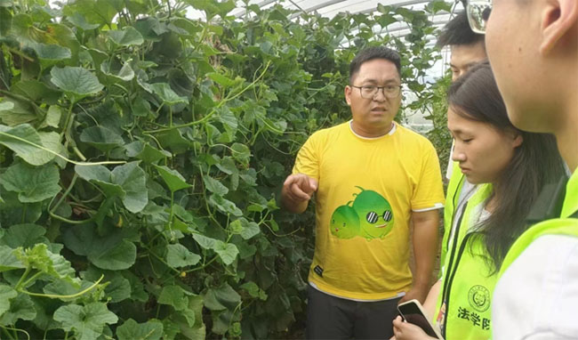 随后,服务队与马明盼一起参观了现代化的瓜棚,在这里可以实现智能化管理和精准化施肥。他说:“每个甜瓜有它自己的生长方式,我们要遵循自然规律,敬畏自然,这样自然就会馈赠予我们。”服务队对马明盼的创业成就表示赞叹,并向他学习了许多关于甜瓜种植的知识。马明盼说:“农业,可以足够小,小到我们每个人都能起步;也可以足够大,大到装下我们所有的梦想”,正是因为这样的理念一直激励着他深耕于甜瓜的种植培养,扎根乡野,运用自己的知识打造属于自己的产业,为乡村振兴做出贡献。