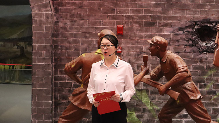 朗诵一篇红色经典。1950年10月,中国人民志愿军为保家卫国,开赴朝鲜战场抗美援朝。陈丁侣等五位学习团成员集体诵读红色经典《谁是最可爱的人》,纪念抗美援朝战争胜利70周年。在他们朗诵的过程中,“有抱住敌人腰的、有保住敌人头的、有卡住敌人脖子,把敌人打倒在地上的、有和敌人到在一起,烧在一起的......”一场最壮烈的战斗——松骨峰战斗被他们用突然出现的低沉凄凉的嗓音心将一段段酣畅淋漓的朗诵表现得淋漓尽致,让人仅虽闻其声,但会让有种身临其境之感,使大家的思绪重回到朝鲜战场,重温那段令人难以忘却的峥嵘历史岁月,警示世人勿忘历史、珍惜当下、奋发图强。