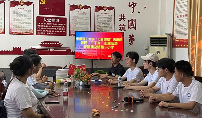 2023年7月11日,为促进青少年儿童教育,提升农村地区学生的学习环境,安徽理工大学“七彩假期”志愿团揣着热忱和关爱,赴阜阳市临泉县庙岔镇第一小学开展志愿服务活动。