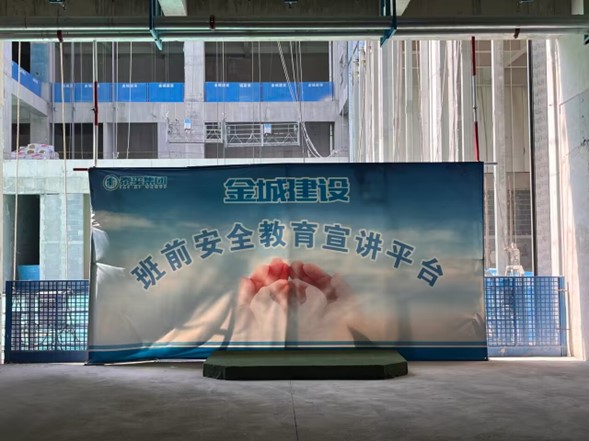 采访开始,实践团在企业负责人的介绍下了解了建筑工人的工作环境。他们无论严寒还是酷暑,都始终坚守在工作岗位上,夏季面临着中暑的风险,冬季手脚经常会冻得麻木,背部和关节常年遭受疼痛。他们需要长时间保持站立等姿势,进行重物搬运和高空作业,同时还要保证工作的高效和安全。这对他们的身体和心理都是一种巨大的压力。为此金城建设为保证建筑工人的身心健康进行了一系列制度规划:建设员工宿舍以确保建筑工人干净的住宿环境,并且定期分发生活必需品,保证工人的健康生活的维持。其次金城建设公司为保证工人的健康,在高温或低温天气会规划好工人的工作时间避免工人因天气原因出现意外。工地内部建立安全宣讲平台,每天开展安全培训,保障工地安全。