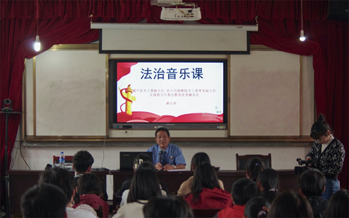 图为威宁县检察院原副检察长蒋仕祥讲授《法治音乐课》 实践队员王语卓 供图