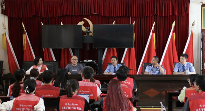 音韵环绕童声齐,法治护航花季行。7月14日下午,实践队与威宁县检察院、县团委、大街乡政府联合开展“知法守法、和平和美和谐”普法实践活动。特邀请威宁县检察院原副检察长蒋仕祥给大街中学40余名初中生上了一堂生动有趣的法治音乐课,同学们从悠扬歌声中,领悟到了远离违法犯罪的深意。课后实践队队员与蒋老师深入探讨法治与“兴趣”如何相结合,为实践队拓宽了普法新思路。