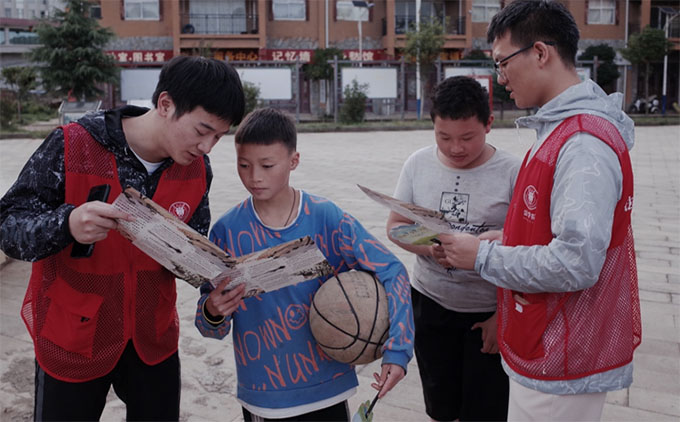 图为实践队队员向未成年人宣传《未成年人保护法》相关知识 谭璐 供图
