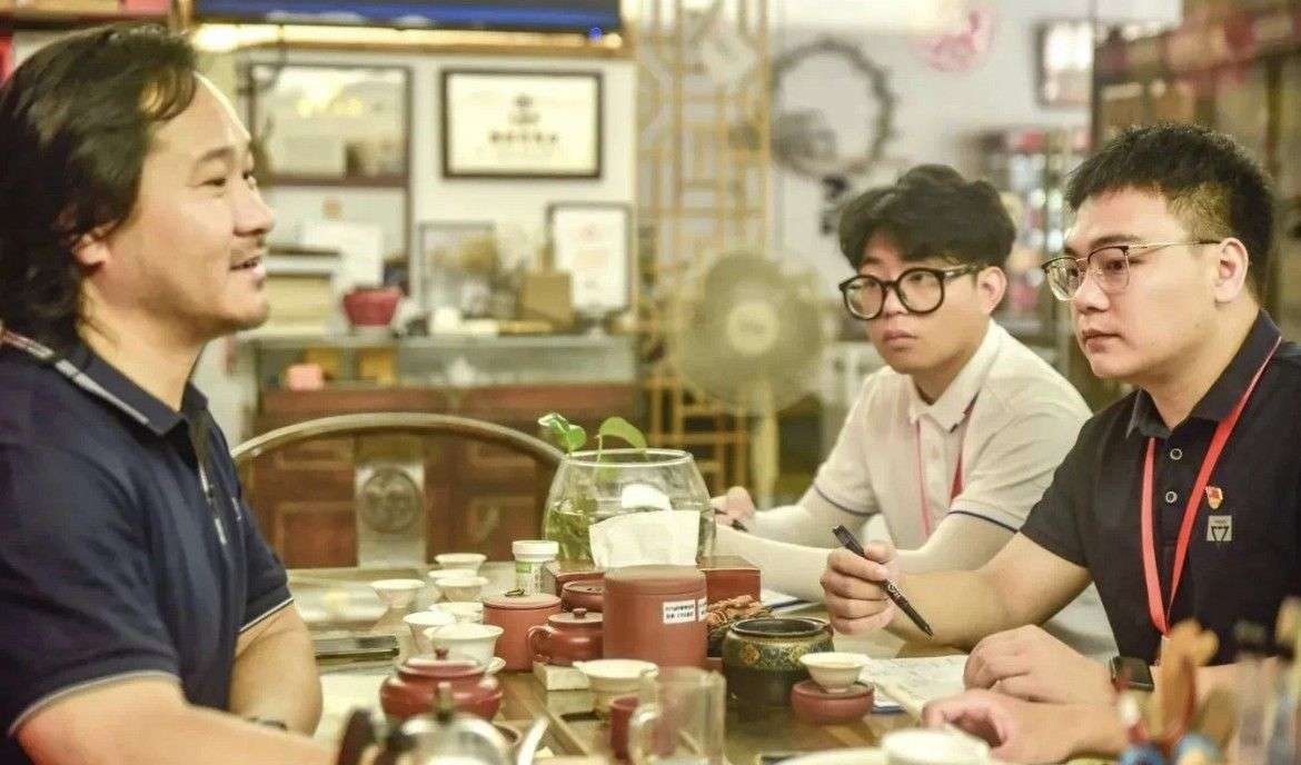 随后,许大师为团队讲解了茶道中的礼仪文化。许大师讲解到传统的潮汕工夫茶不管多少客人一般都只用三个杯子。一个杯子寓为一个口字,三个杯子则组成了“品”字。还详细的向我们讲解关于叩指礼、斟茶七分满、斟茶顺序等茶礼仪,通过遵守茶礼仪,我们能够体验到茶道带来的宁静与和谐。 最后,许大师以拱手礼的教学结束了今天的采访。