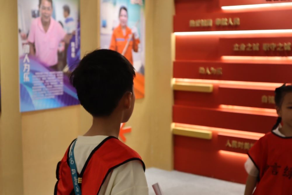 图为学生们在道德馆中解读体悟文明榜样的事迹、感受文明的力量