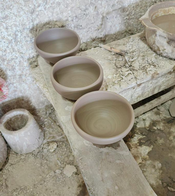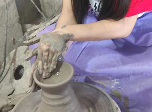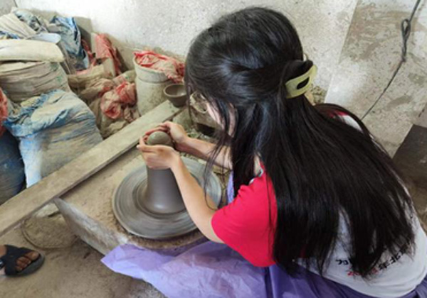 7月22日,北京科技大学华夏拾遗实践团只为钧来实践队在进行了一段时间的理论研究与采访咨询后,开始联系相关钧窑,进行实地探访。实践队伍首先参观了钧窑的工作环境,仔细观察了钧瓷的制作过程,增进了对钧瓷制作的了解。在实地参观之后,队员们进行了实践,与钧窑内的老先生学习拉胚。在制作过程中,队员们感受到了制作的不易,钧瓷的制作并非人们所想象中的那样,只是“玩泥巴”而已,它对于手控制的方向,力度等都具有较大的要求。在此次实践体验后,我们深感钧瓷手工艺者的不易,也敬佩于他们的匠心。