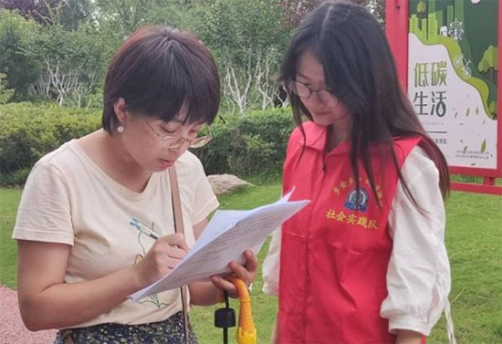 实践队员们制作了调查问卷,对植物园内的工作人员进行随机访谈调查,以获得对悬铃木的种植意见和对建立盲人植物园的建议。工作人员表示:“道路需要探索,首先要有建立盲人植物园的初步构想,其次实地考察、询问和征求当地居民的意见,再做进一步规划。”工作人员鼓励实践队员积极加入到乡村振兴的大潮中来,在实践中磨炼意志品质。