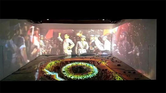 最后实践团队队员们来到了纪念馆二层--专题展区和多媒体互动展区。展览设置了《攻打敌军指挥部》等大型多媒体场景、360度全息柜、多通道环幕投影技术,增强了展览的表现力、感染力和冲击力;在展厅内搭建了长400多米的历史长廊,使用大量的背景图像烘托南昌起义革命历史事件与八一背后的故事。运用现代多媒体技术将历史事件重新演绎展出,身临其境般的参观继承了“改革”的初心;耳目一新时的感叹得益于先辈的硕果。