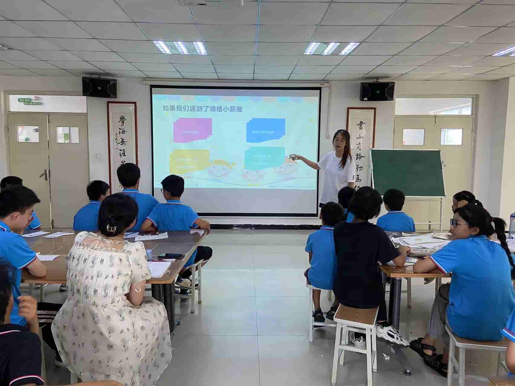 课程的最后,实践团成员为孩子们强调了情绪小恶魔的坏处,当我们面临难过、委屈、生气时,一定不要积压情绪,要善于表达情绪,可以做适当的运动,痛快的喊一会,向好朋友倾诉,一定要去解决问题,做情绪小恶魔的控制者,而不是被它所控制,弱者任情绪控制行为,强者让行为控制情绪。管理情绪,做情绪的主人。