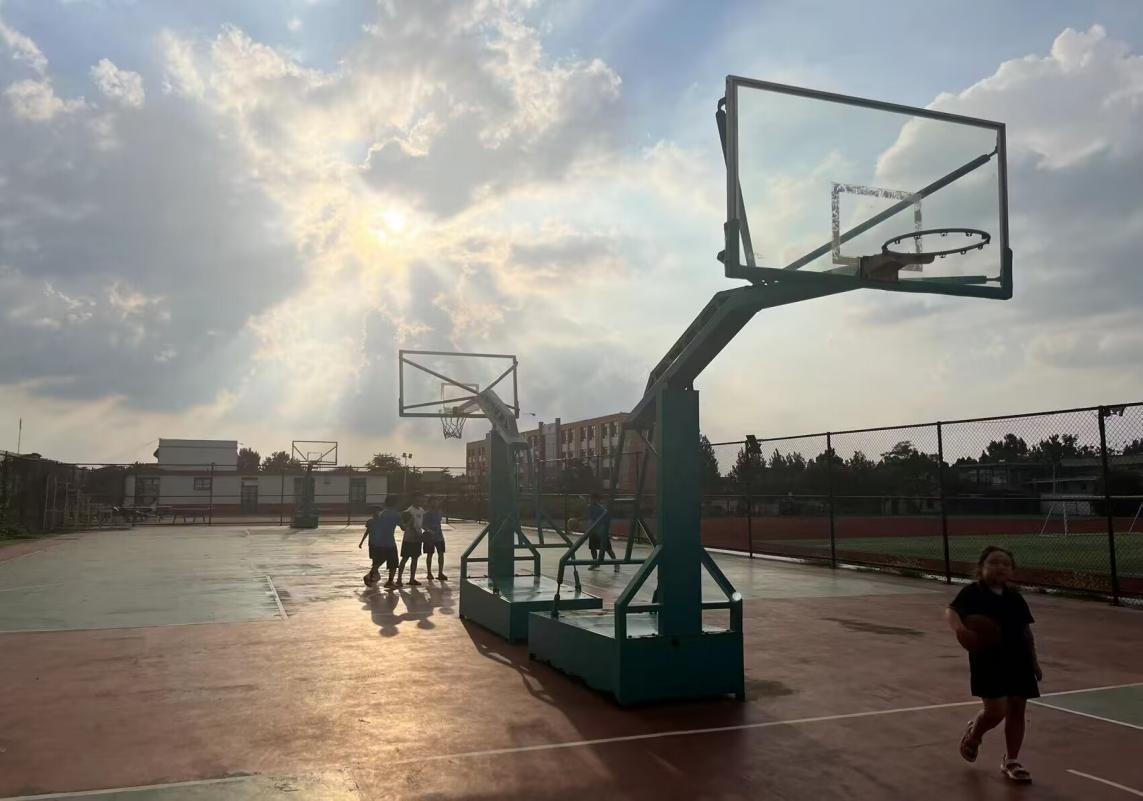 在第四节课,由Red youth实践团成员张同庆带领孩子们到篮球场进行篮球教学,益海助学中心的孩子们认真学习热身和拉伸的相关技巧以及有关篮球技术。张同庆同学在带领孩子们进行简单的热身后,开展了慢动作篮球教学活动,孩子们围坐一圈认真学习相关动作。教学完成后,孩子们自行练习篮球技术。随后,孩子们自由组队打球赛,由张同庆同学担任裁判组织篮球比赛,推动比赛有条不紊的进行。