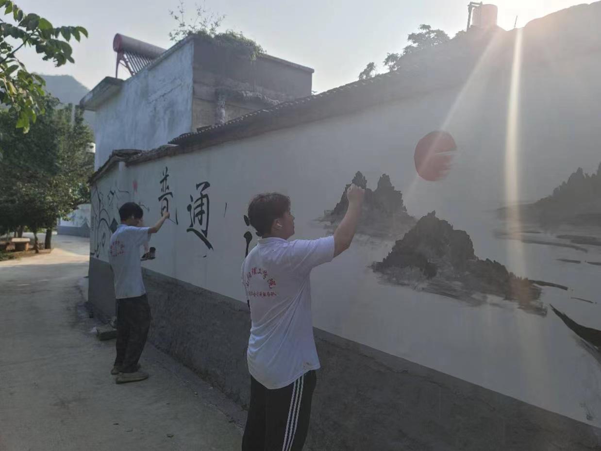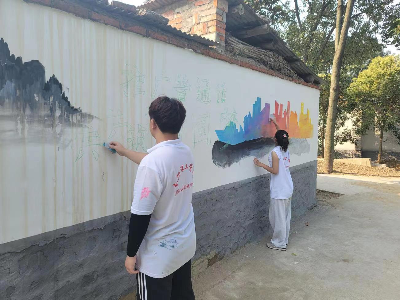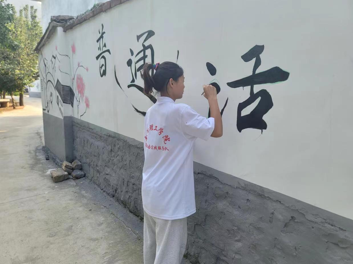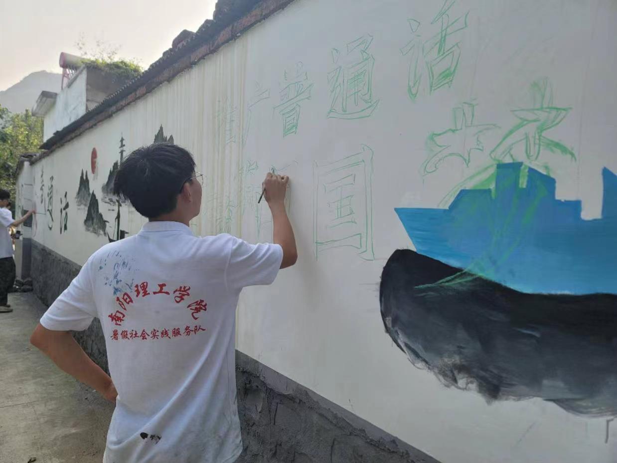 为提高乡村普通话使用率,服务于全面建设小康社会,南阳理工学院数字媒体与艺术设计学院“用画推普,以绘振兴”志愿服务队于2023年6月23日前往南阳市南召县太山庙乡九里山村,给乡民们推广普通话。