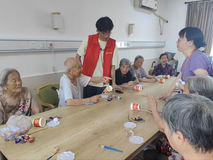 2023年7月14日,为弘扬中华民族“敬老爱老”的传统美德,增强青少年责任感和使命感,南京信息工程大学党校学联“明悟党史,逐梦山阴”小分队来到了位于绍兴市越城区的塔山悦华居家养老中心,在这里继续进行志愿服务,以绵薄之力去关心老人,用热忱的心去温暖老人。