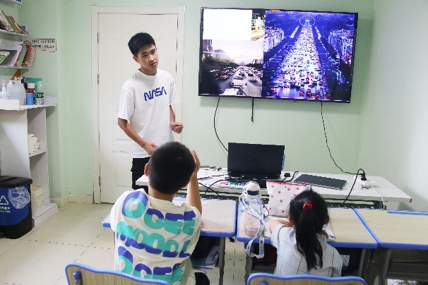 志愿者改变传统的问答形式,采用小组讨论、代表展示的上课方式,结合孩子们日常生活,详细讲解步行安全和乘车安全两大方面的内容,充分发挥同学们的主动性。孩子们对交通安全有了更加深刻的认识,并积极落实到实际行动中。