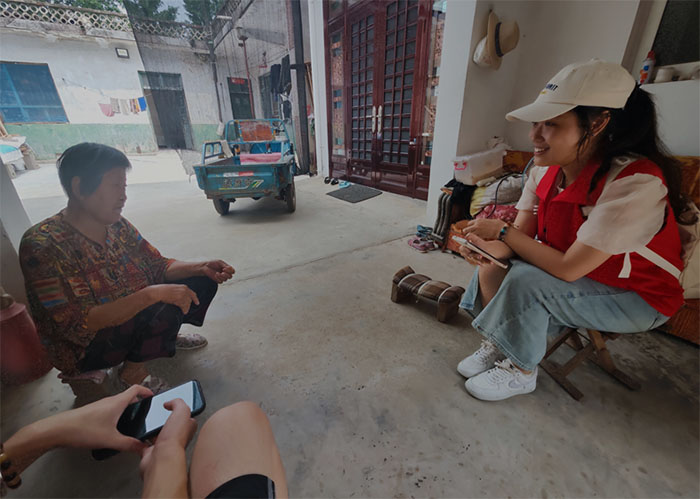 图为实践队员采访董奶奶。通讯员 王文钊 摄