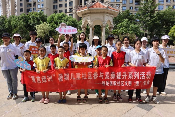 习近平总书记指出“要为少年儿童办实事,让孩子们成长得更好”,为推动新时代文明理念向低龄化普及,助力儿童健康成长,集美大学童言绿洲实践队于7月25日在信毅社区带领社区儿童开展“我是信毅社区文明‘童’管家”暑期儿童社区参与素养实践活动。