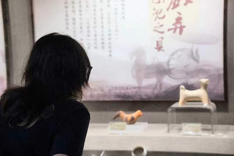 图为东汉陶狗和陶鸡(仿) 通讯员华雨晨 摄