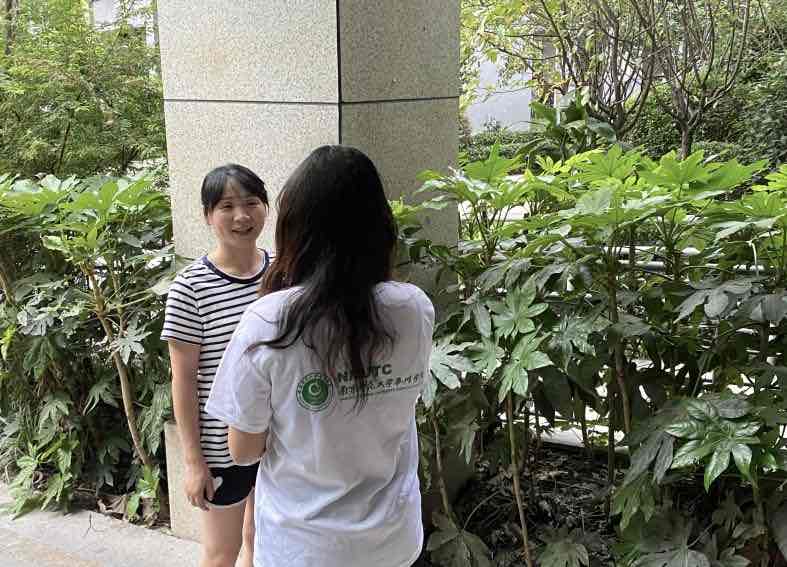 图为实践队员周秭彤在采访 ,彭志钦 摄