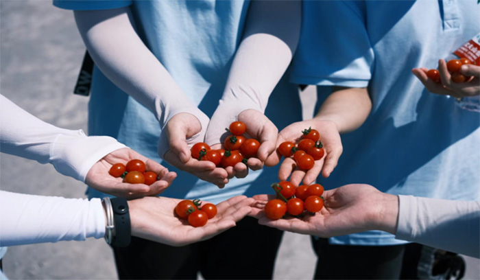 图为郎家村村民给实践团的小番茄。通讯员 廖文琪 摄