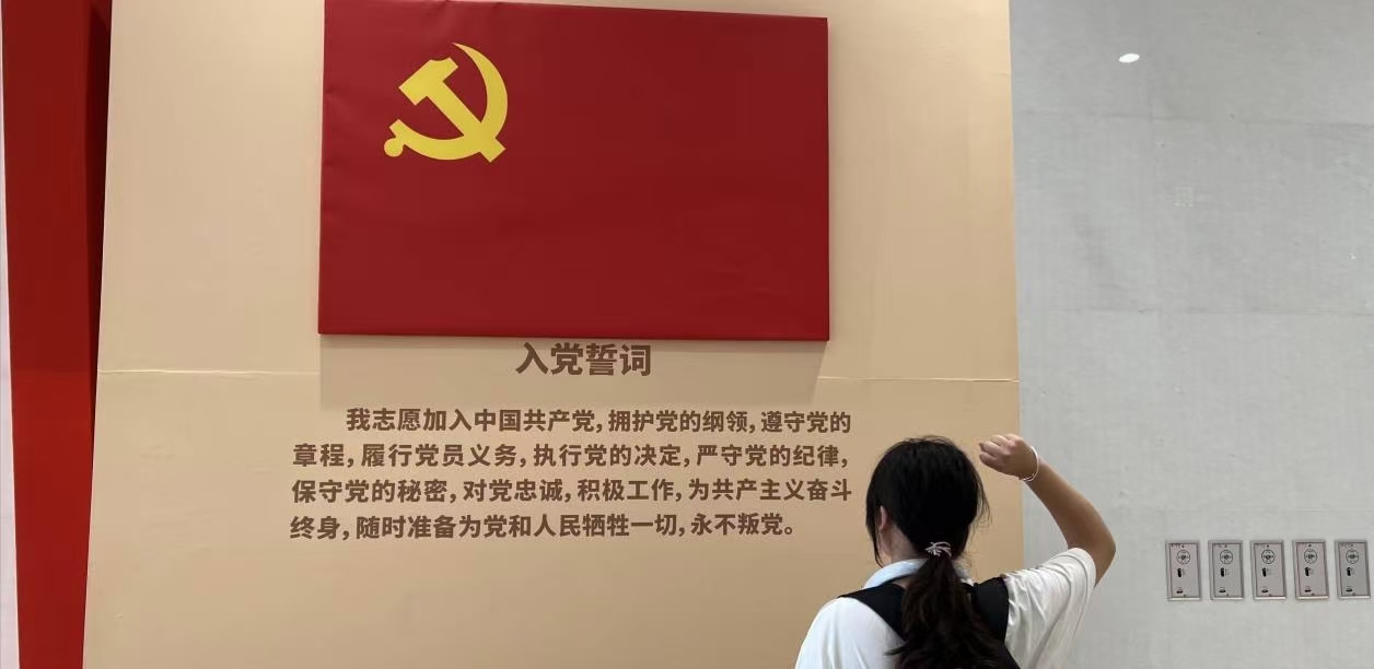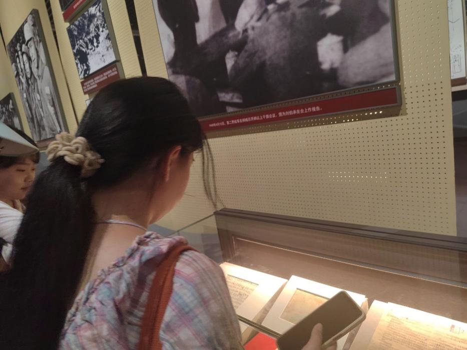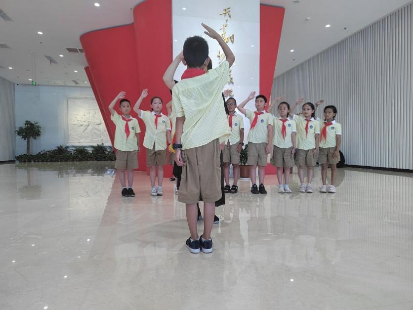 踏入南京渡江胜利纪念馆的大门,眼前是一群充满活力的青少年。来自各个学校的队伍整齐排列,带着热情和好奇心,一步一步踏进这庄严而庄重的场所。他们身着校服,面带微笑,举起右手,庄重宣誓,仿佛已经预感到了即将开启的历史之旅。家长们也紧紧拉着孩子的手,期待着共同探索红色精神的深刻内涵。在参观的过程中,一些家长在为孩子们录着讲解渡江战役历史的视频,“渡江战役是中国人民解放战争的重要一战,也是中国共产党领导下人民军队的一次伟大胜利......”,他们用着流利的语言,将历史的故事娓娓道来。虽然年龄尚幼,但他们担负起向参览者讲述红色精神的重任。这群充满活力的青少年以及他们身后坚定的家长还有实践小分队的队员们共同见证了红色精神在新一代心中的传承。
