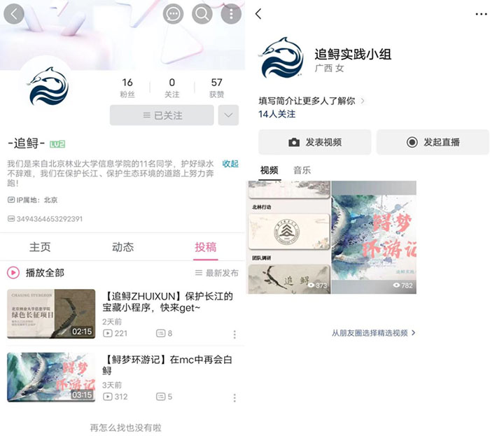 同时,我组为扩大实践影响力,制作两则精良视频上传至哔哩哔哩、微信视频号及微博,与我的世界结合制作鲟梦环游记及一则小程序讲解宣传视频。
