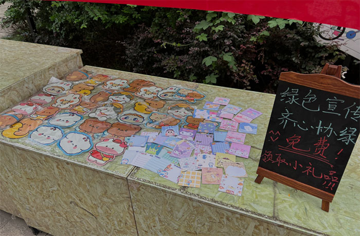 “纸上得来终觉浅,绝知此事要躬行。”在摆摊宣讲绿色知识的同时,实践团成员更加明白“以身作则”的道理,将掉落在地上的空瓶子捡起并扔进了垃圾桶,并告诉当地小朋友们要养成垃圾分类的好习惯,不能随地乱扔垃圾,做一个文明的市民,小朋友在获得了实践团队发放的小纪念品之后对垃圾分类有关的知识更加印象深刻。