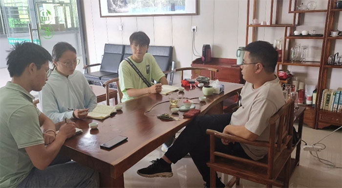 在实地考察结束后,队员们来到雨思忆茶场,对其负责人进行深入访谈,希望借此能更好地了解当地茶产业现状,从而更好的开展相关工作。