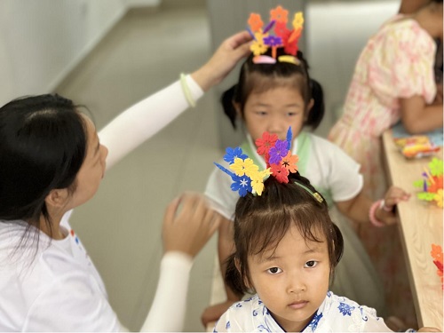 实践队成员在罗浮镇石门村与孩子们玩游戏、做手工