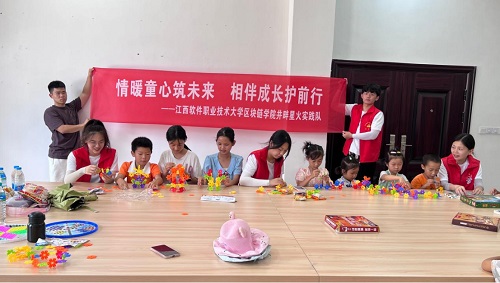 7月8日,江西软件职业技术大学区块链学院“井畔星火”实践队分为两队分别奔赴井冈山市罗浮镇丰田村、石门村开展关爱儿童系列活动,做好乡村儿童情感关怀、教育关爱、文体活动、安全教育等服务工作,为当地孩子们的健康成长贡献青春力量。一双大手牵起另外一只小手,一束光点亮另外一束光。此次“情暖童心筑未来,相伴成长护前行”关爱儿童系列活动给孩子们送去温暖,为他们的健康与快乐贡献出一份力量。