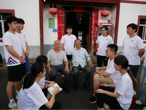其中老党员尹冰心同志虽已90岁高龄,但他身上仍然保留着那种经历了战争洗礼的军人气质,对党和国家的忠诚始终如一。大家围绕着老党员的身旁,聆听他讲述着那段峥嵘岁月,“我是1951年参军,随部队南征北战,担任通讯工作,后因身体原因回到老家石坪村,1981年起担任村支书。我入党时是一名退役老兵,当时的初心就是要为党和人民做出贡献。”他寄语全体队员,青年学生要以自身实际行动,践行初心使命,坚定理想信念。
