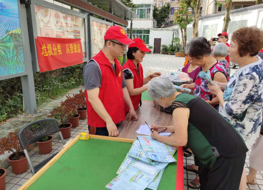活动第二站,实践团来到马群社区。活动中,实践团成员向居民发放垃圾分类宣传资料,并逐一向居民讲解垃圾分类的重要性,教会居民如何分类可回收物、厨余垃圾、有害垃圾和其他垃圾,对特别容易混淆的垃圾进行了全面的讲解。活动还设置了“问卷调查送好礼”的小活动,让居民在问卷作答的同时,加深了解垃圾分类的意义和分类的方法,潜移默化地让居民自觉、积极参与到生活垃圾分类工作中来,逐步让大家养成垃圾分类的良好生活习惯。