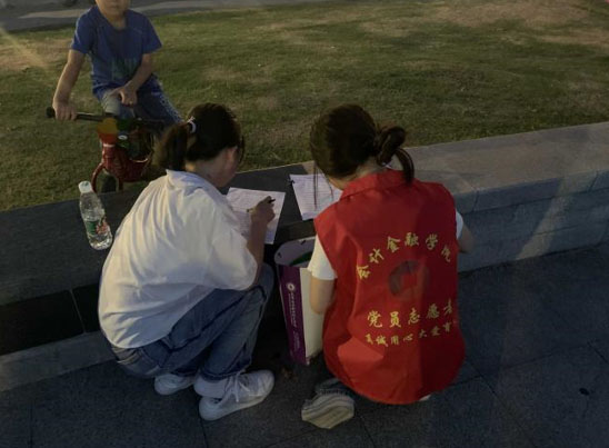 图为实践团成员深入社区进行垃圾分类问卷调查