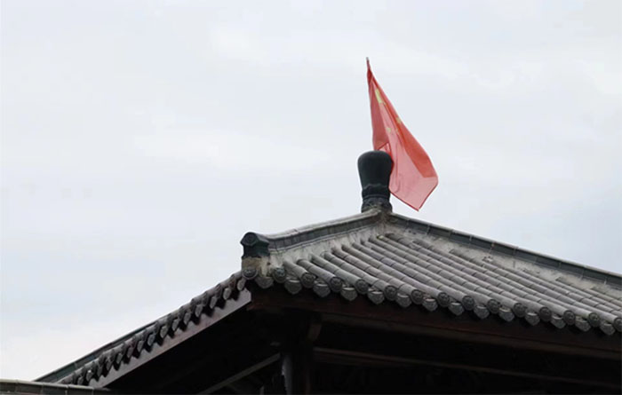 (邱家河村中飘扬的五星红旗 作者:杨起)