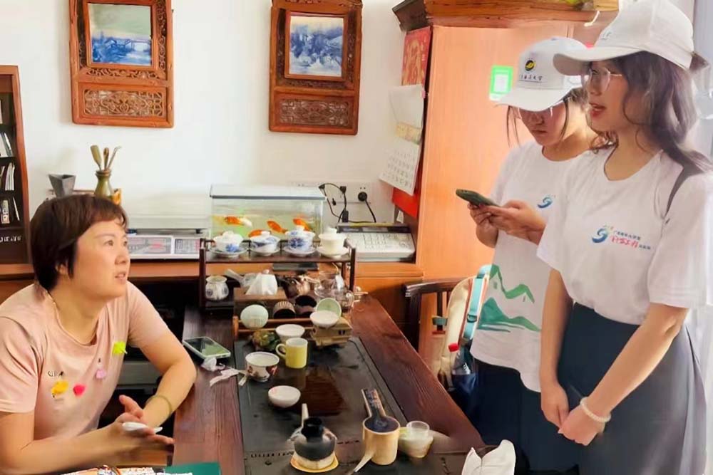 图为茶香富源实践队采访小规模的茶铺。通讯员 伍朵朵 供图