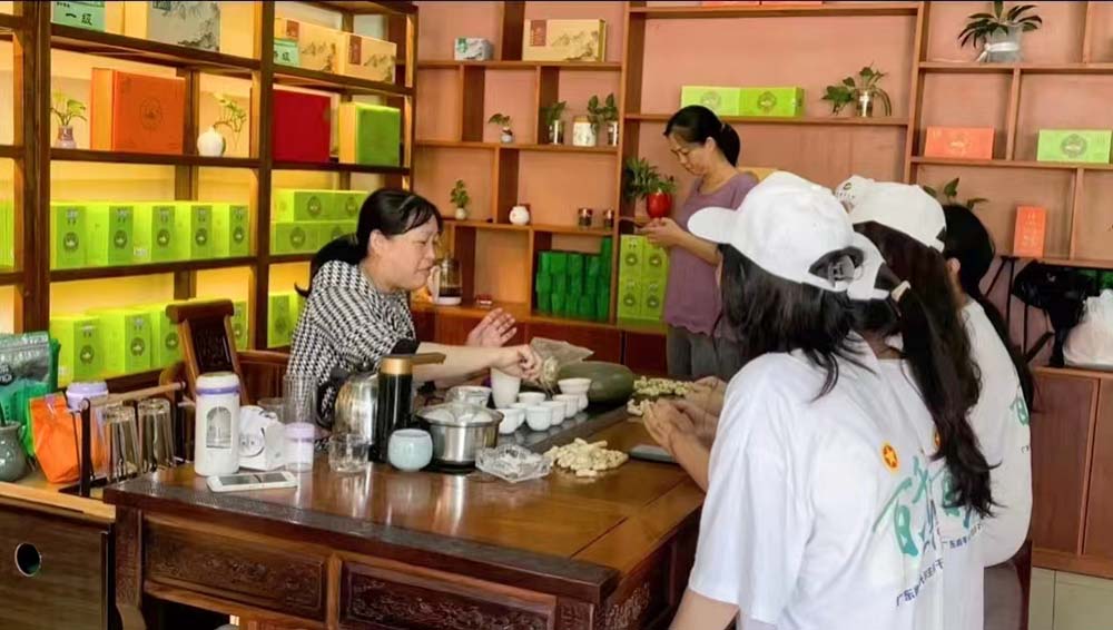 韶关7月9日电(通讯员 周佳彤 黄佩柔 伍朵朵)为进一步学习宣传贯彻习近平新时代中国特色社会主义思想,引导和帮助广大青年学生学好理论和实践相结合的“大思政课”,在社会课堂中“受教育、长才干、做贡献”,坚定信念听党话、跟党走,广东海洋大学茶香富源实践团队前往广东省韶关市乐昌市大源镇针对当地茶产业进行调研。2023年7月7日至9日,为进一步了解大源镇当地茶产业的基本情况,茶香富源实践队队员们一同前往乐昌市大源镇人民政府与茶企直营店调研。