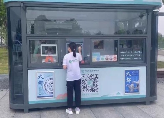 此外,队员们还观察到大运河博物馆外特有的文创小屋,颇具现代化魅力。队员们上前询问,通过与工作人员的交谈得知:这是大运河博物馆现代化发展中的重要一环,在博物馆的入口和出口分别设有这样的流动小屋,有特色的雪糕和伴手礼供游客购买,丰富旅客的大运河文化之旅。实践队员表示文创小屋是扬州大运河博物馆充分展示自我、弘扬运河文化的平台,它的落设为来扬旅客与扬州的特色文化搭建了一座沟通的桥梁,是扬州在中国式现代化中围绕“更丰富的精神文化生活”做出的切实努力。