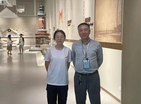 (图为实践队顾欣雅与大运河博物馆工作人员合影。 陶雯瑄 摄)