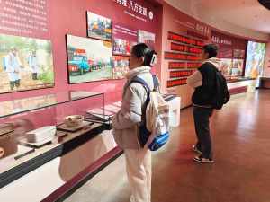 在了解完王家坝闸的相关知识后,实践团循着习近平总书记的足迹,来到了阜南县王家坝抗洪纪念馆,参观了展出的珍贵照片、文献、实物、影像,了解到王家坝淮河治理、抗洪抢险、生产自救的红色历史与光辉历程。伴随着讲解员声情并茂的讲述,实践团成员依次参观七个展厅,也由此深刻体悟到蒙洼人民长期以来与洪水抗争的艰辛和“舍小家为大家”的精神内涵。看着纪念馆里触动人心的画面、饱含真情的叙述,以及蒙洼人在大局面前,不畏艰险、不怕困难的自强不息、同舟共济精神,成员们深受触动,代代相传,历久弥新的“王家坝精神”仿佛浮动在每位成员身边,令人动容。