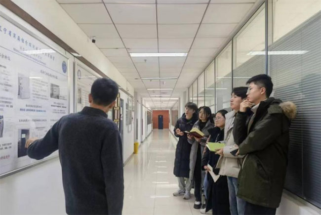 实践团首先参观了本校激光光谱与大气遥感实验室。梅亮教授团队深耕大气污染监测激光雷达领域,研制了基于沙氏成像原理的“天眼哨兵”激光雷达,实现了大气污染全天时扫描探测。实践团成员们共同研习沙氏成像原理,对“天眼哨兵”激光雷达项目的潜在价值和现实意义有了更加全面而深刻的了解。