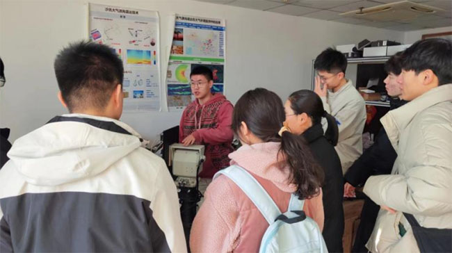 实践的第三站为中科院大气物理研究所。李弘毅博士学长和研究员杨婷老师带领实践团成员参观了研究所和用于低层大气综合探测的气象铁塔,杨婷老师给实践团成员们介绍了大气物理所在京津冀大气污染治理中的卓越成效,队员们切身感受到了大气科学研究的重要作用及深刻意义。