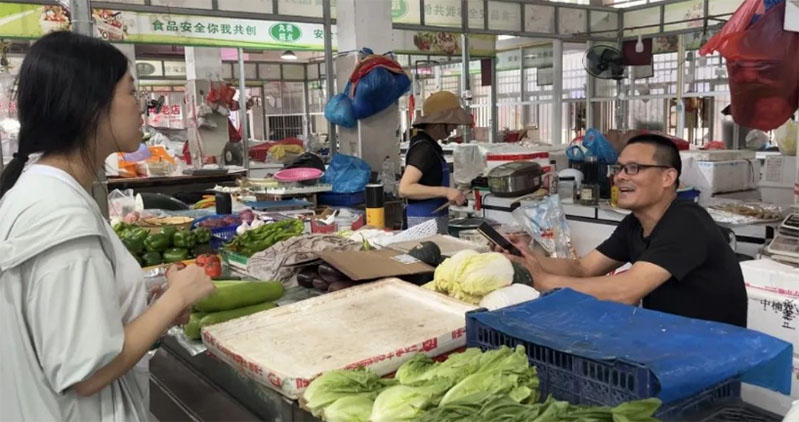 图为实践队队员与当地菜农进行采访(“扬帆起航”小队 摄)