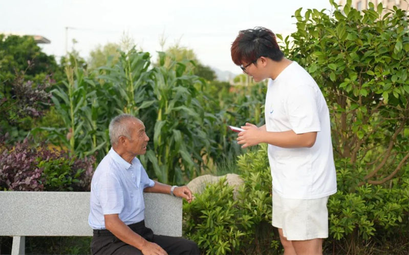 图为实践队队员与当地村民进行采访(“扬帆起航”小队 摄)