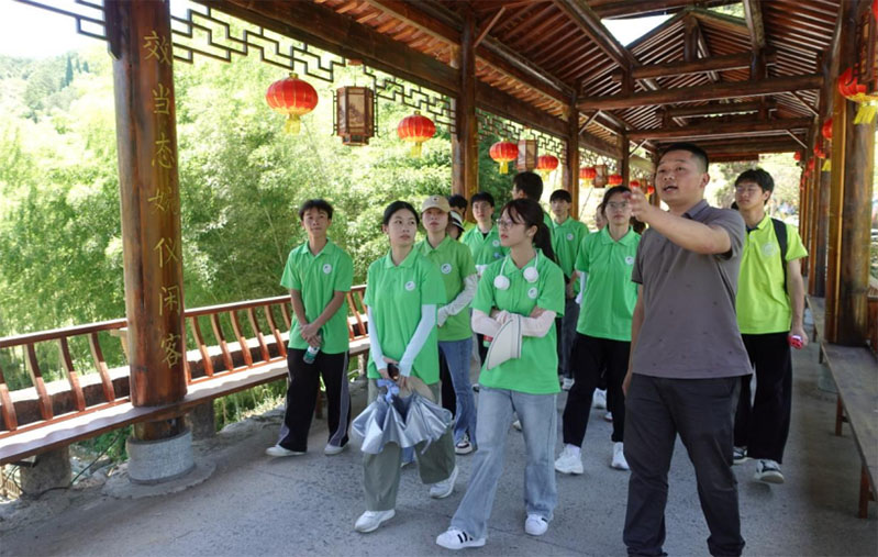 随后,实践队来到了泗桥乡东北部的溪口村。据了解,溪口村有着良好的生态资源,适合发展生态旅游项目。近年来,溪口村大力发展生态农旅融合产业,同时坚持党建引领网格化治理,着力构建起“村党组织+网格党小组+党员中心户”三级组织体系,把党组织的影响力和号召力延伸到基层末梢,走出了一条乡村善治新路子。在老师们的带领下,实践队员参观了当地各色的旅游设施与旅游项目,领略了当地水库的宜人景色,深刻感受到了当地以生态农旅融合产业助力乡村振兴之路。
