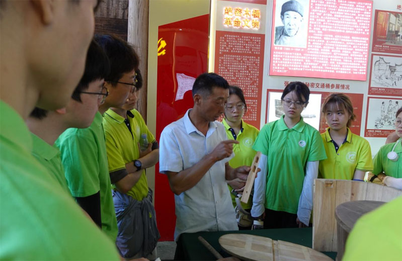 图 3图为讲解员为实践队员介绍张云盛绝密木桶的故事
