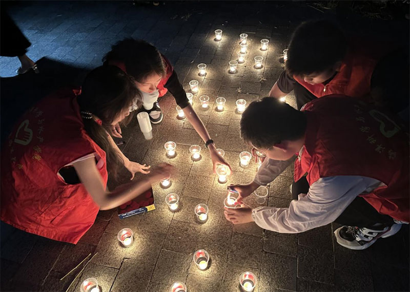 图为志愿者点亮防艾宣传蜡烛 “青春奋进,博爱与你”暑期社会实践团摄