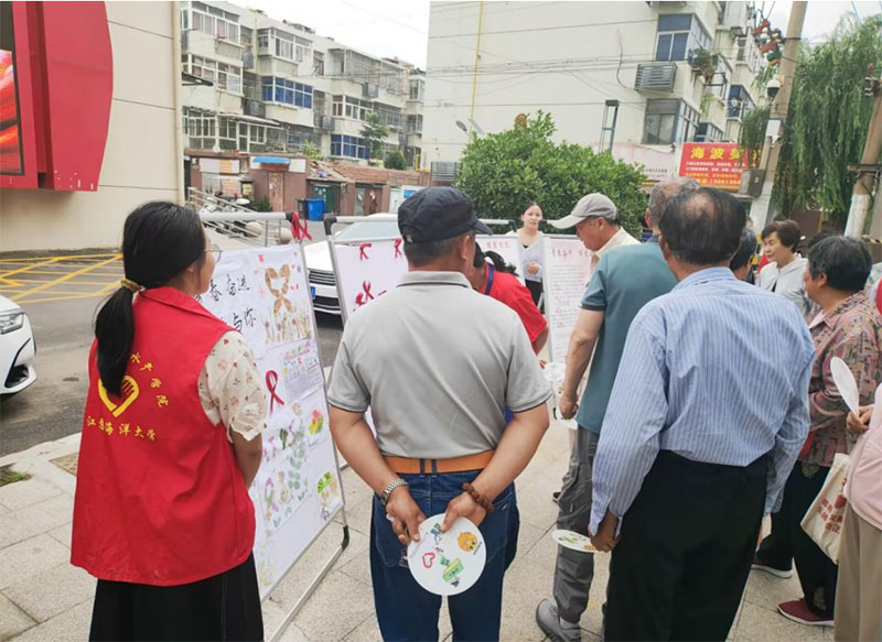 实践团成员巧妙利用生活用品,制作了禁毒防艾主题的文创周边和科普展板,在万达广场、苏宁广场等人流密集区域进行宣传,还在现场邀请市民共同制作象征关爱与支持的红丝带,为艾滋病患者撕下“标签”,写下对艾滋病患者的祝福,加深了公众对防艾工作的认识。在分发禁毒防艾宣传海报的同时,实践团成员为市民热情讲解了防艾、毒品种类知识以及艾滋病检测试纸的使用方法等,为传递禁毒防艾科学知识贡献一份力量。