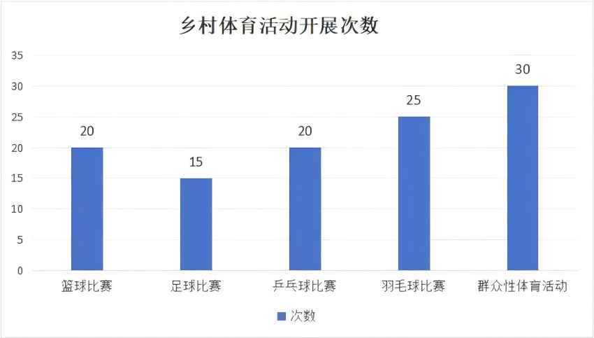 结合调查情况得出以下分析:乡村体育活动篮球比赛开展20次,足球比赛开展15次,乒乓球比赛开展20次,羽毛球比赛开展25次,群众性体育活动开展30次。泾县乡村体育活动开展次数整体较少,当地政府应提高体育活动开展的重视程度,应积极学习并研究拓展全方面、多形式的体育活动。